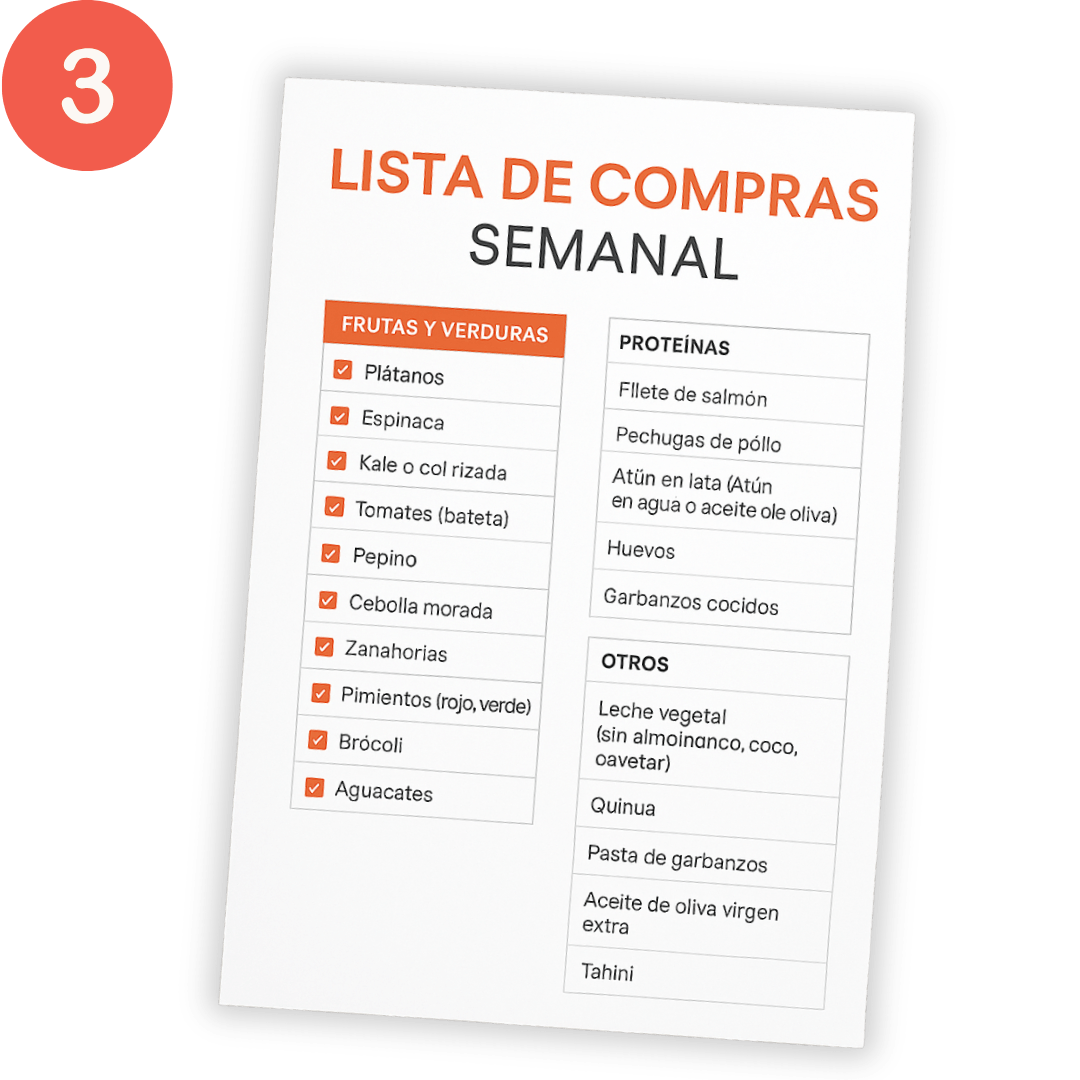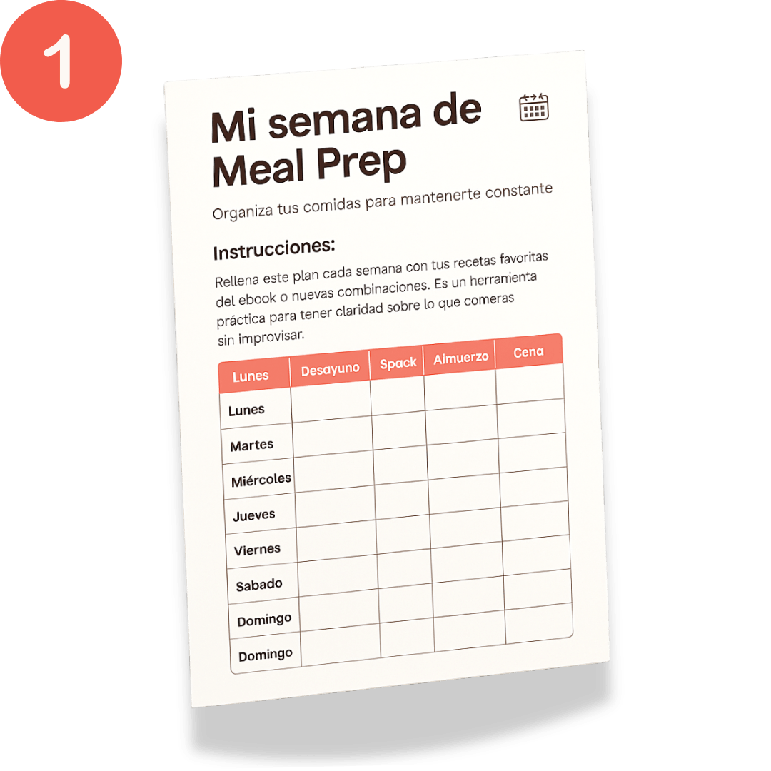 Recibirás acceso inmediato a tu guía con todas las recetas, menús semanales y listas de compras.
